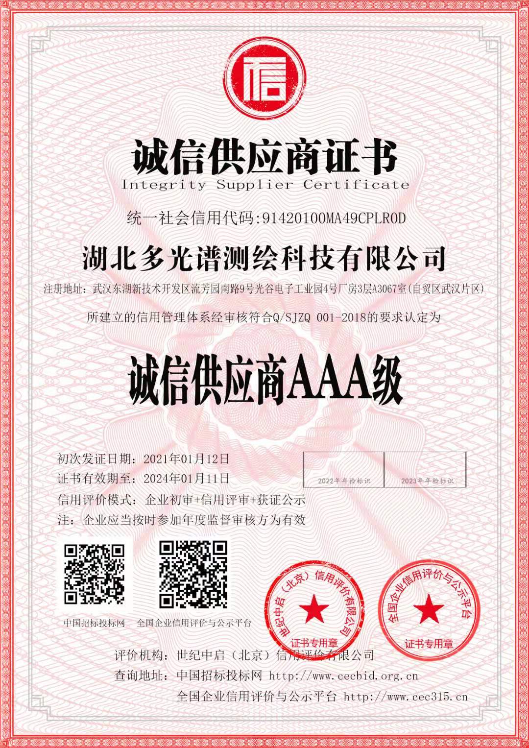 誠(chéng)信供應(yīng)商證書(shū)--誠(chéng)信供應(yīng)商AAA級(jí)