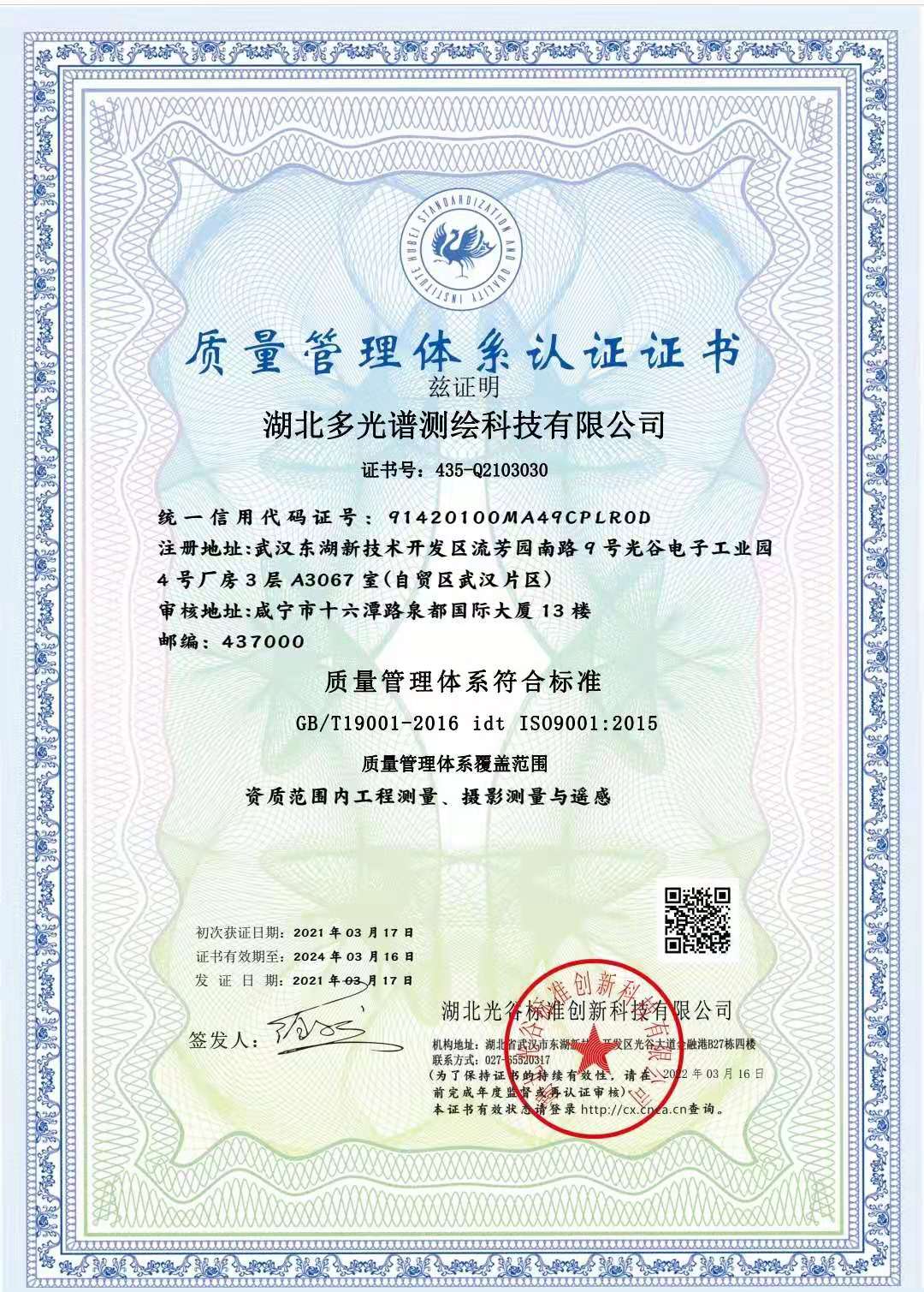 質(zhì)量管理體系認(rèn)證證書(shū)