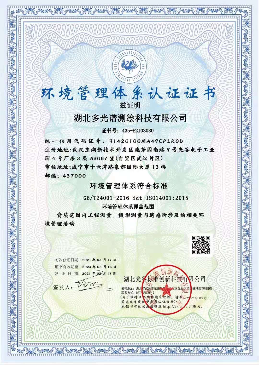 環(huán)境管理體系認(rèn)證證書(shū)