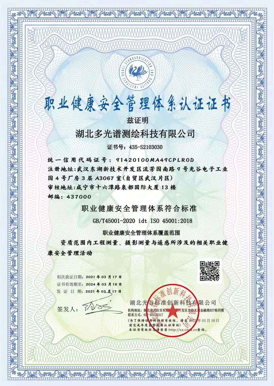 職業(yè)健康安全管理體系認(rèn)證證書(shū)