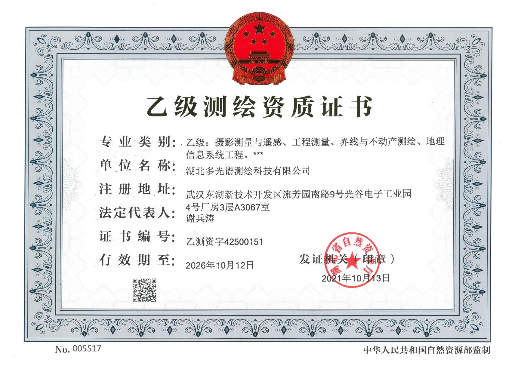 乙級(jí)測(cè)繪資質(zhì)證書(shū)