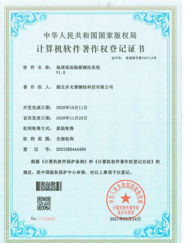 計(jì)算機(jī)軟件著作權(quán)登記證書(shū)-地理現(xiàn)場(chǎng)勘察測(cè)繪系統(tǒng)...