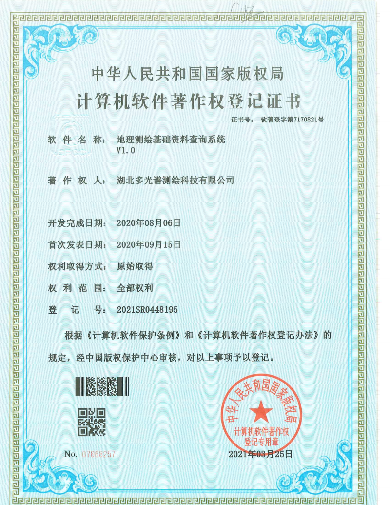 計(jì)算機(jī)軟件著作權(quán)登記證書(shū)-地理測(cè)繪基礎(chǔ)資料查詢(xún)...
