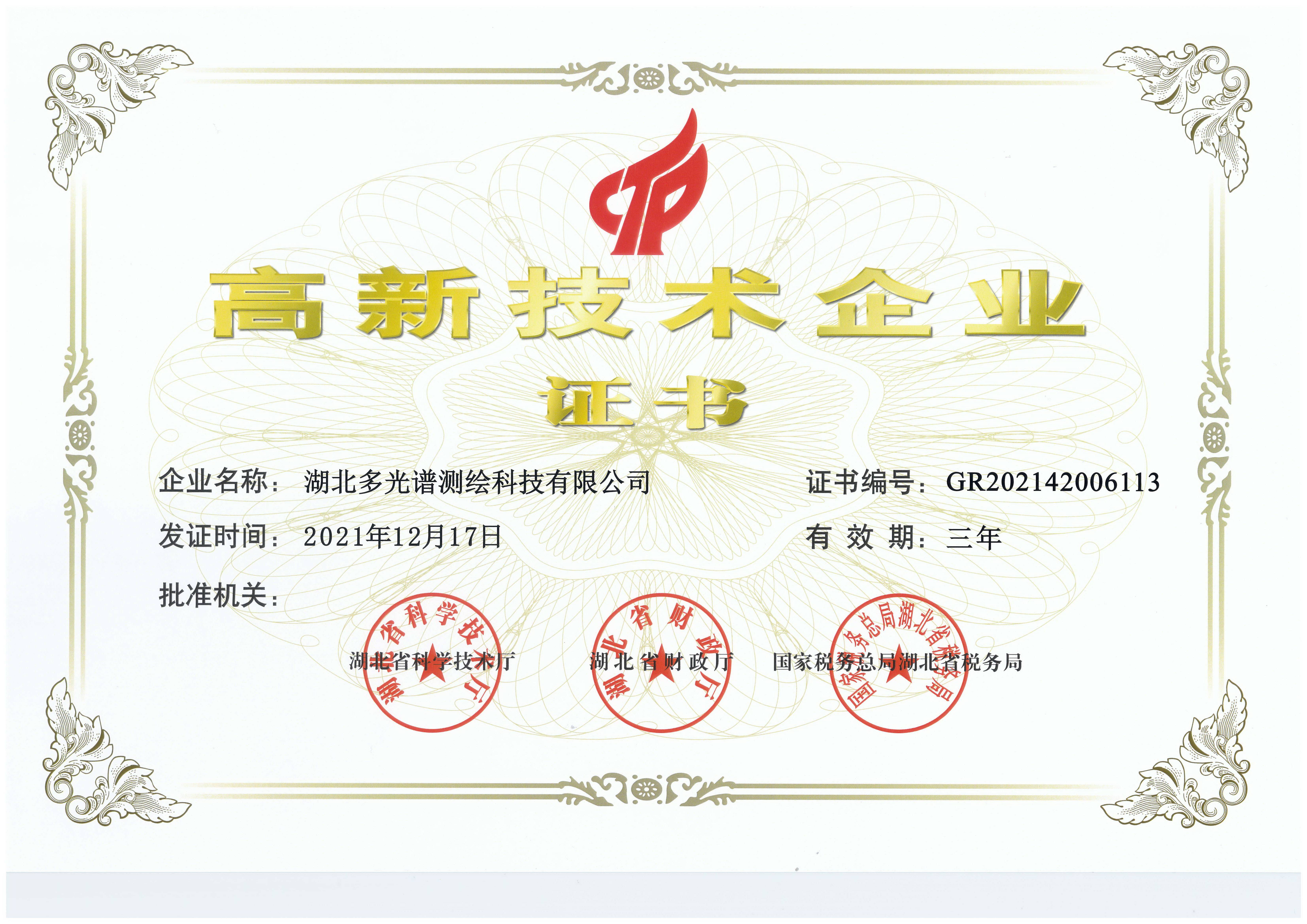 高新技術(shù)企業(yè)證書(shū)